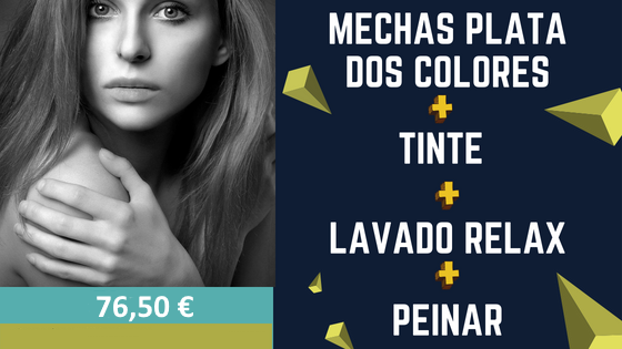31 mayo, 2018 Comments: 0 Posted by: Autor MECHAS PLATA DOS COLORES + TINTE + LAVADO RELAX + PEINAR “ — 76,50 € –« Promociones válidas de Lunes a Viernes, excepto vísperas de festivos RESERVAR